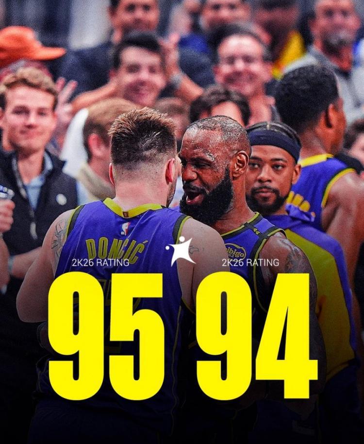直播吧8月25日讯 NBA2K 26的新赛季评分已经正式出炉,詹姆斯94,东契奇95。